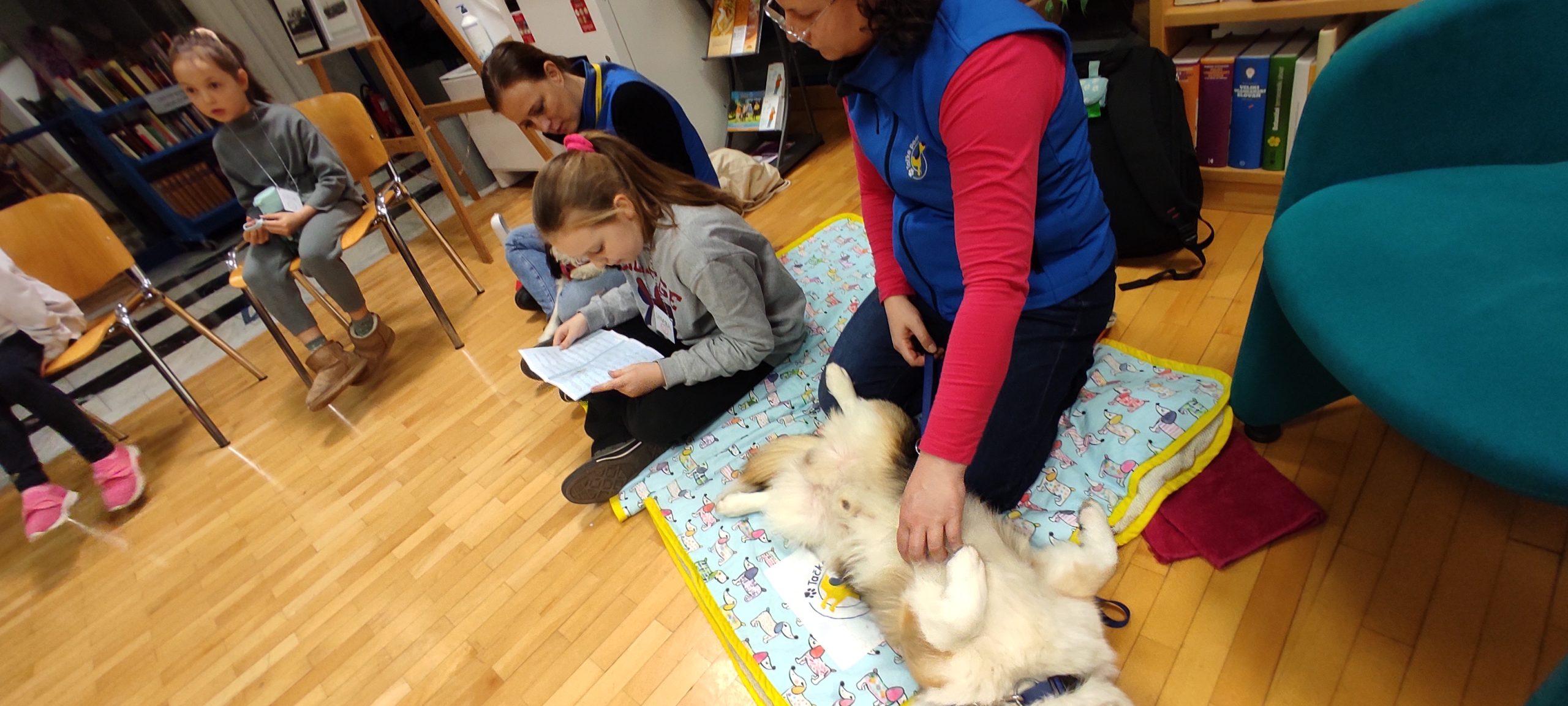 V ponedeljek, 28. 2. 2023, smo v Knjižnici Lucija za otroke pripravili prav posebno srečanje. Obiskala sta nas terapevtska kužka in njuni vodnici iz društva Tačke pomagačke. Corgi ”Pixi” in Cavalier King Charles španjel ”Agata” sta z veseljem prisluhnila pravljicam, ki so jih prebrali otroci. Tokrat smo jima prebirali pravljice o kužkih in glede na njun odziv in vse pokazane trike sta nam dala znak, da sta zelo zadovoljna. S projektom želimo spodbujati otroke k branju, ki bogati naše znanje in besedni zaklad na prijeten način.