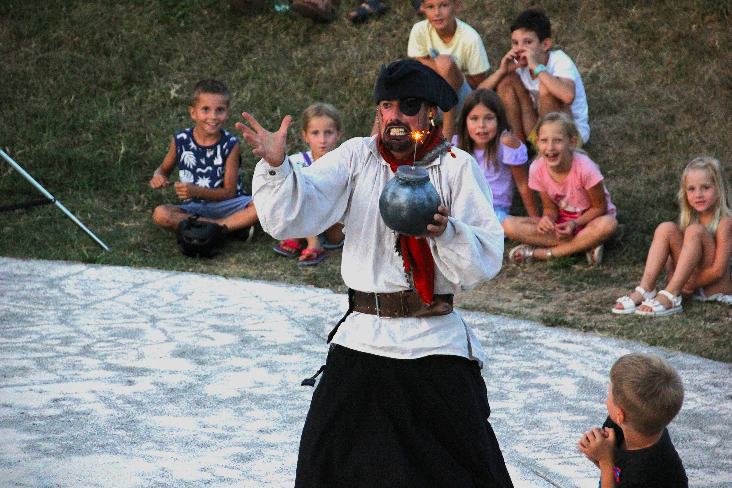 V sredo, 23. 7. 2025, nas je v parku Sonce v Luciji pričakala gledališka skupina Čupakabra, ki je na Lučkah nastopila z otroško cirkuško predstavo Gusarji spod hribov.