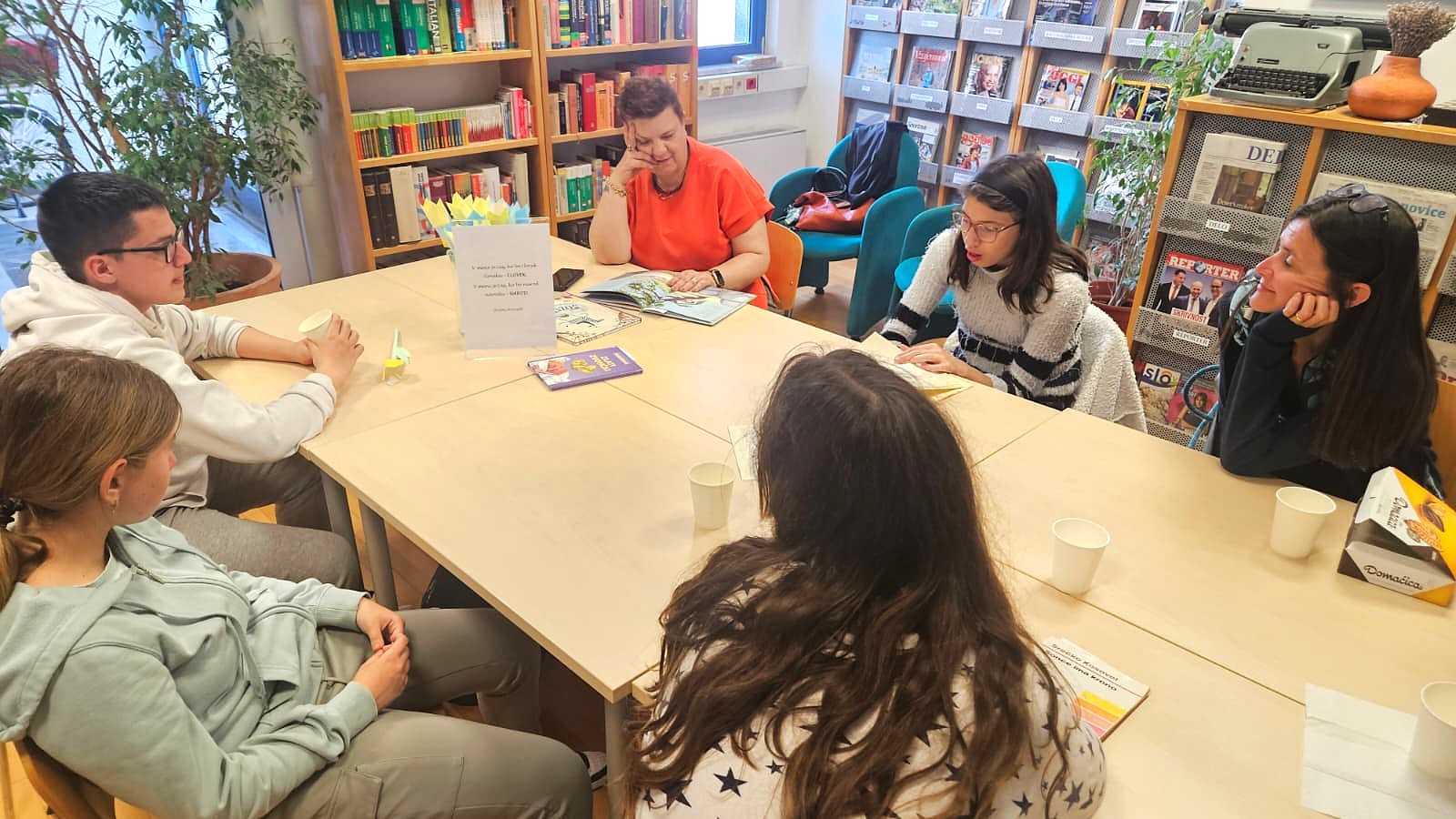 Na svetovni dan knjige so nas obiskali učenci zadnjega triletja CKSG. V okviru projekta Noč knjige smo jim pripravili prijetno čajanko, posvečeno pesniku Srečku Kosovelu in njegovim (tudi mladinskim) delom. Ob piškotih in čaju smo v sproščenem vzdušju razmišljali o njegovem kratkem, a izjemno bogatem življenju ter si med seboj brali izbrano poezijo.