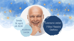 V tednu praznovanja svetovnega dneva in Noči knjige bomo slavnostno odprli projekt Primorci beremo z odličnim literarnim večerom: z nami bo Miha Mazzini – Osebno. Večer, ko se bo razpravljalo o odnosih, razumevanju, poslušanju in vzorcih v naših življenjih. Zelo osebno in radovedno o najnovejši knjigi Osebno in mislih, ki jih deli v svojih kolumnah. Pogovor bo vodila Ivana Jana Paladin.