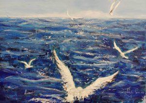 1. Čudovita razstava, podpišem, kar je povedala spoštovana kolegica Ivica. Sliko krila sem si že kupila, da me bo v službeni pisarni spominjala na vse lepo, modro, plemenito in bogato v življenju. Le-to nam bogatijo umetniki s srcem, kot je mlada avtorica razstave, Mateja Pečar