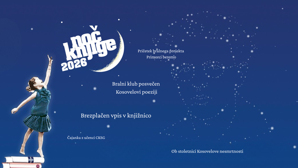Letošnja Noč knjige, ki jo bomo praznovali v četrtek 23. aprila, nosi posebno težo in svetlobo. V letu 2026 zaznamujemo stoletnico nesmrtnosti pesnika Srečka Kosovela, čigar besede še danes odzvanjajo z izjemno močjo in jasnostjo.