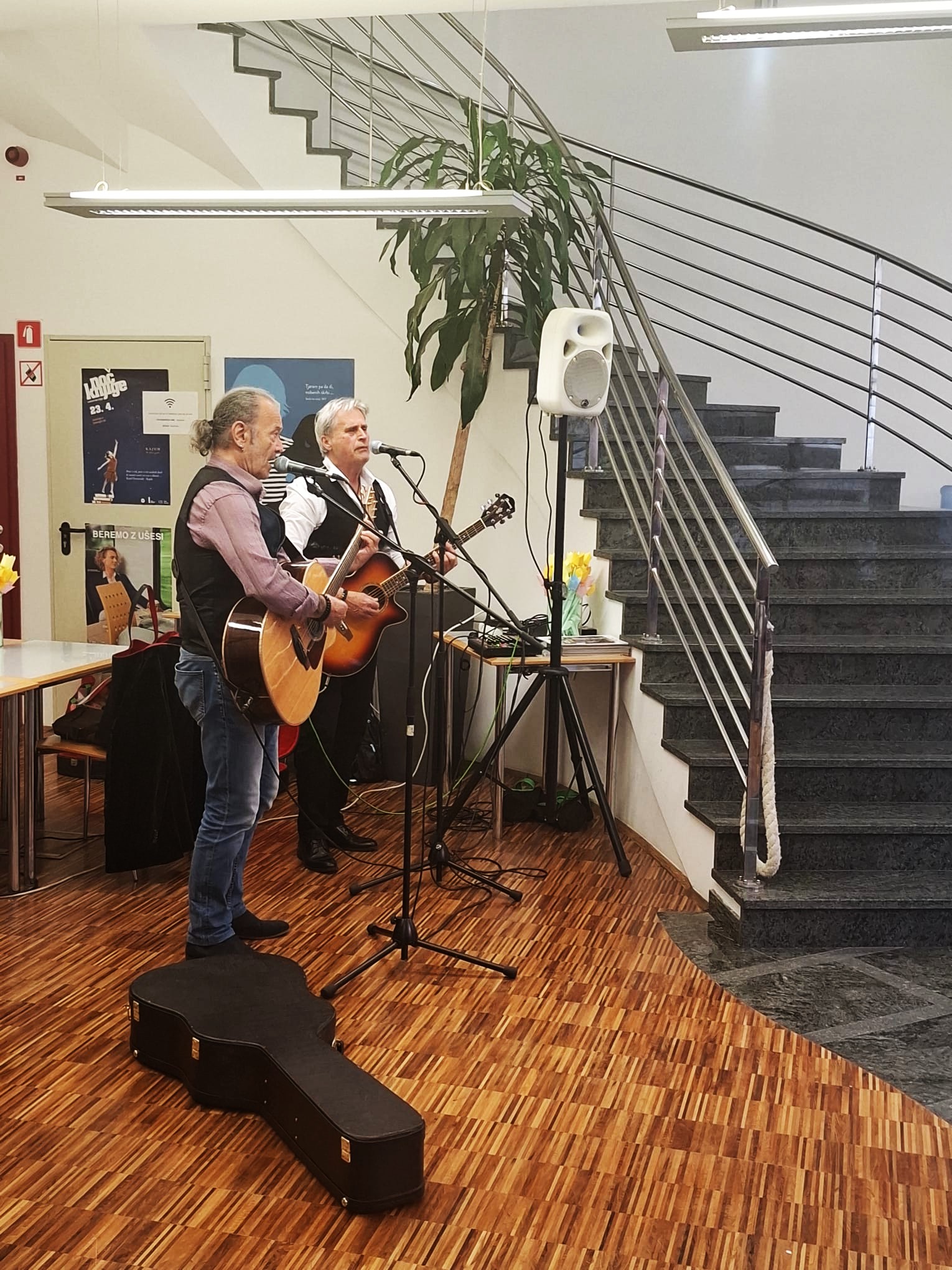Poziv “odprimo se spremembam” je na odprtju razstave podkrepil duo PiranExpress.